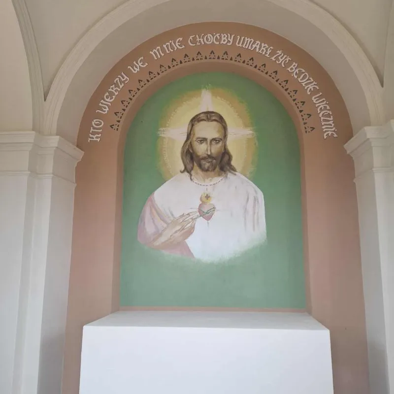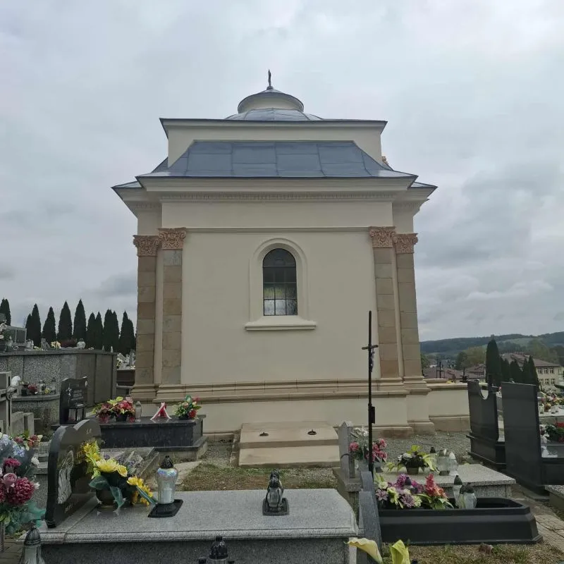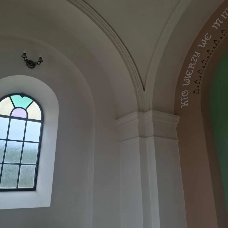 - Wykonanie nowych tynków renowacyjnych wraz z odtworzeniem oryginalnej warstwy kolorystycznej kaplicy.
