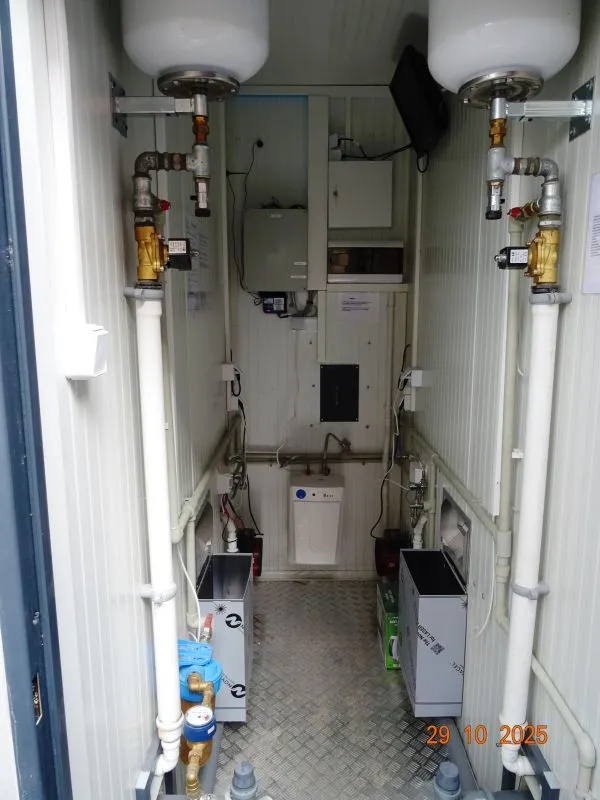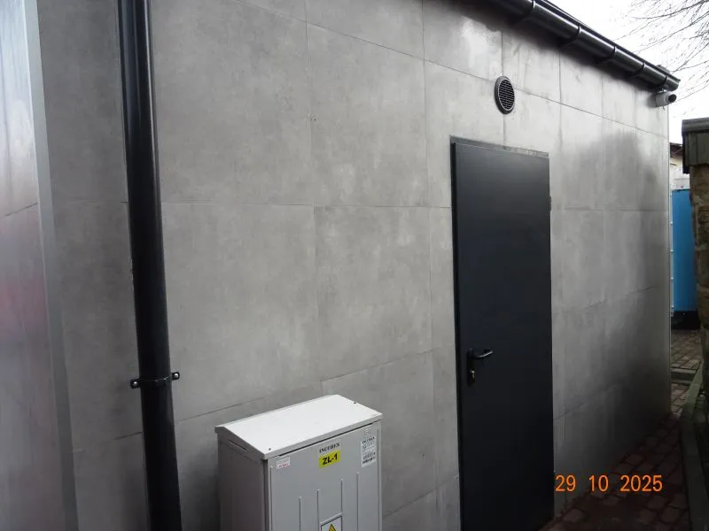 Informujemy, że w dniu dzisiejszym, 29 października 2025 r., pomyślnie odebrano zadanie pn.: Montaż kontenera sanitarnego i budowa przyłączy: elektrycznego i kanalizacji sanitarnej oraz przebudowa przyłącza wodociągowego na działkach nr ewid. 1072/1, 1071, 1083 w Kołaczycach w ramach zadania: "Montaż kontenera sanitarnego na działce nr ewid. 1072/1 w Kołaczycach".