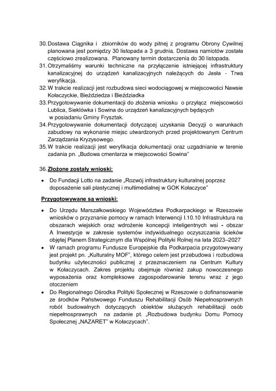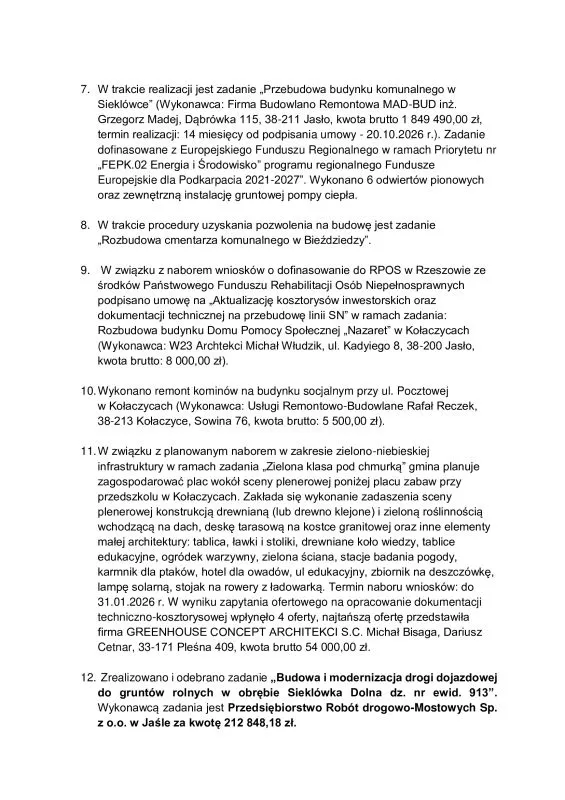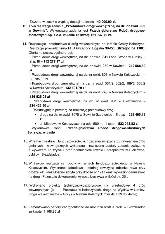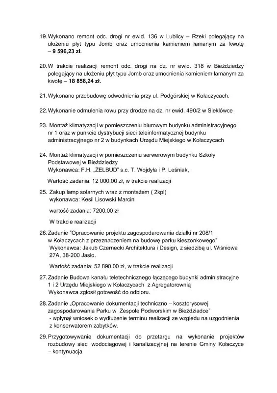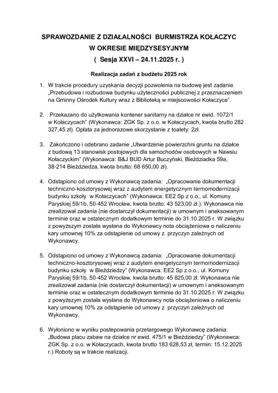 W załączeniu Sprawozdanie z działalności Burmistrza Kołaczyc w okresie międzysesyjnym.