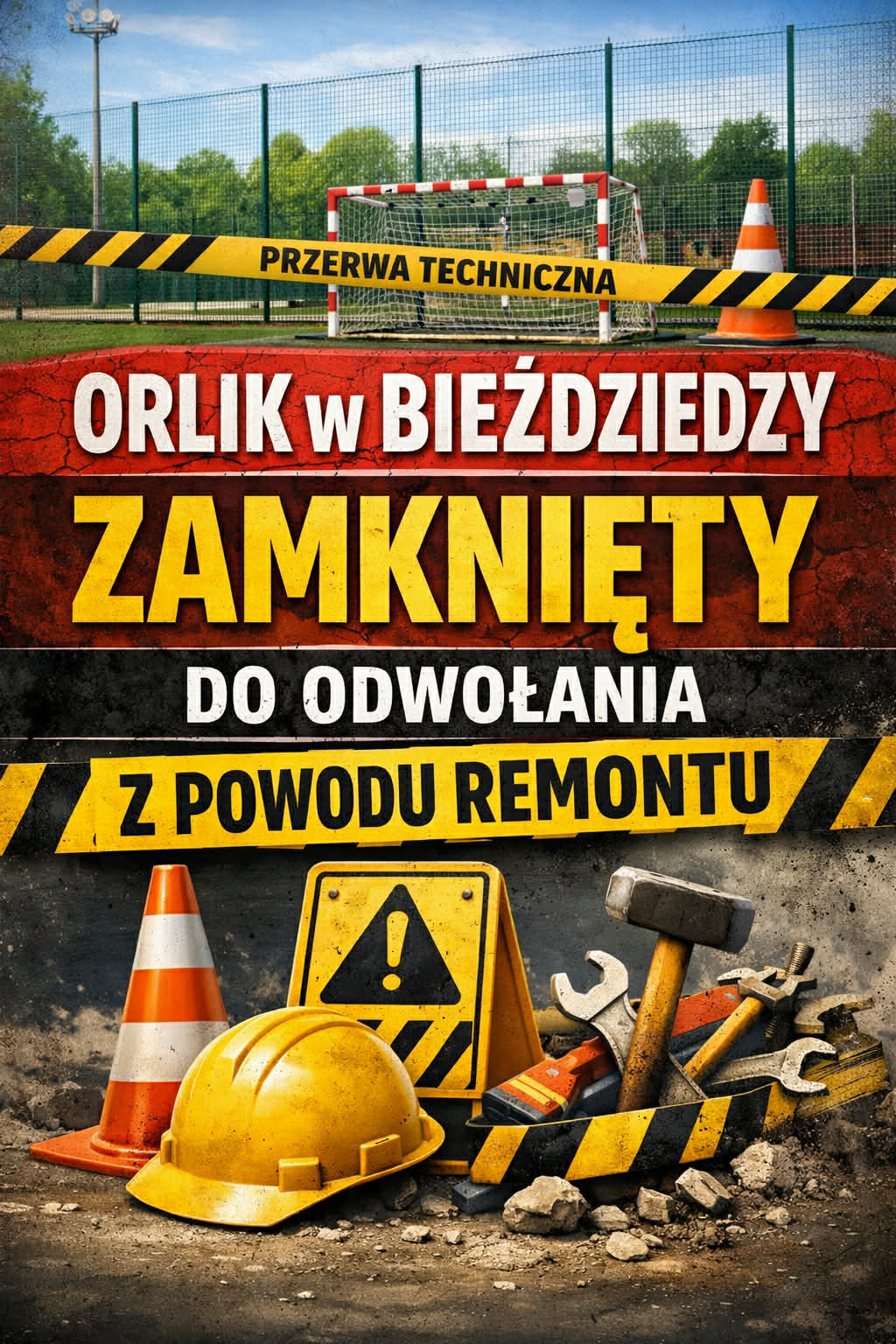 Informujemy, że w związku z przekazaniem placu budowy, które odbyło się wczoraj (8 kwietnia), od dzisiaj – 𝟗 𝐤𝐰𝐢𝐞𝐭𝐧𝐢𝐚 𝟐𝟎𝟐𝟔 𝐫. – kompleks sportowy 𝐎𝐫𝐥𝐢𝐤 𝐰 𝐁𝐢𝐞ź𝐝𝐳𝐢𝐞𝐝𝐳𝐲 𝐳𝐨𝐬𝐭𝐚𝐣𝐞 𝐳𝐚𝐦𝐤𝐧𝐢ę𝐭𝐲 𝐝𝐨 𝐨𝐝𝐰𝐨ł𝐚𝐧𝐢𝐚.