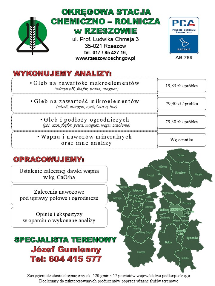 Okręgowa Stacja Chemiczno-Rolnicza obsługuje aż 120 gmin i 17 powiatów województwa podkarpackiego.
