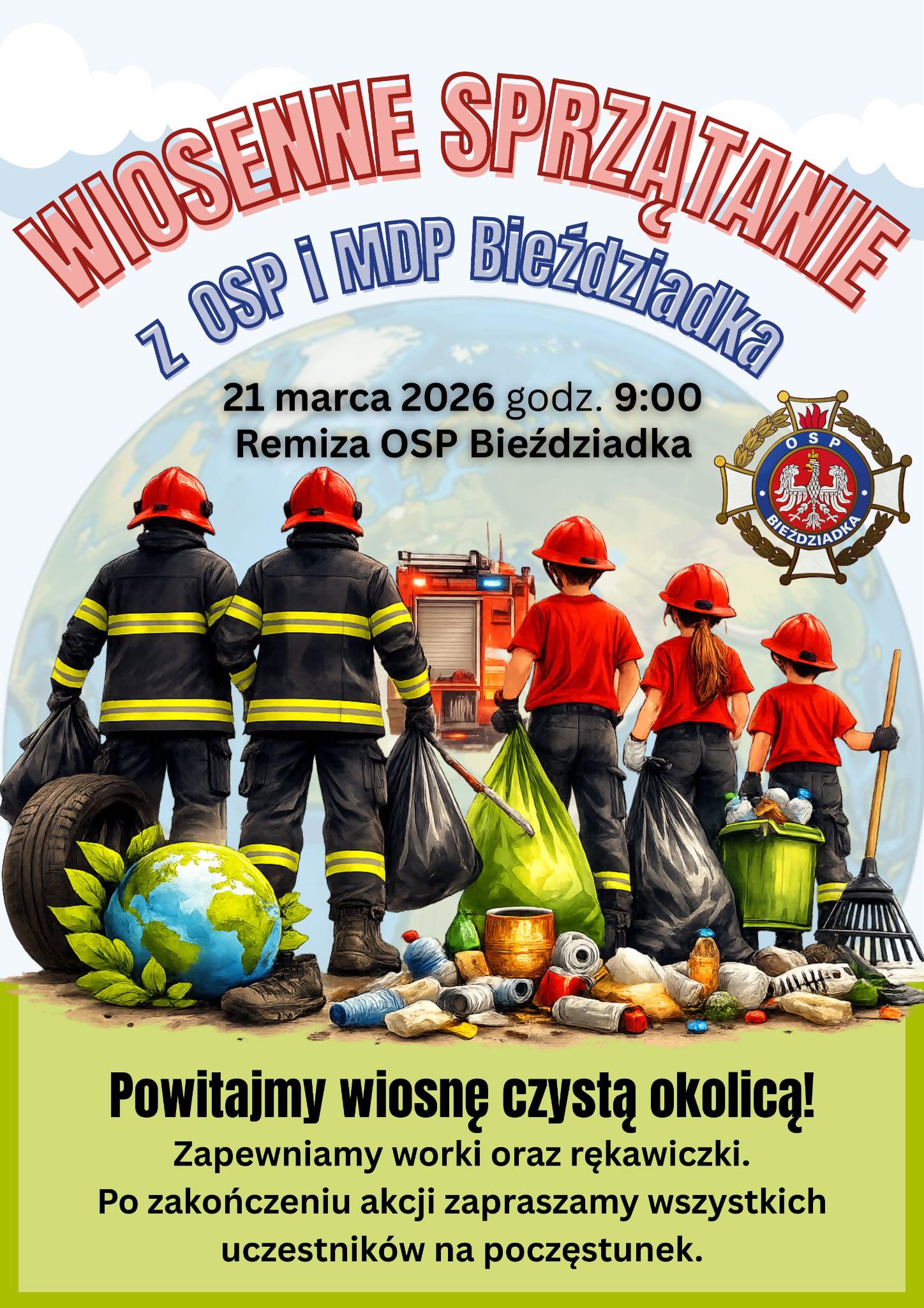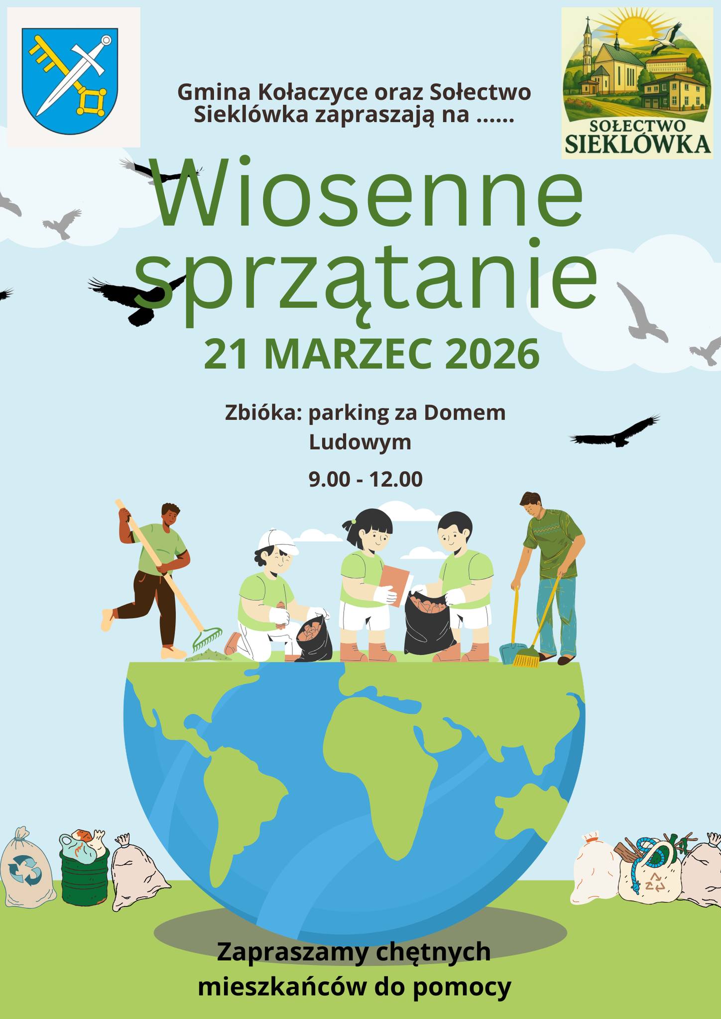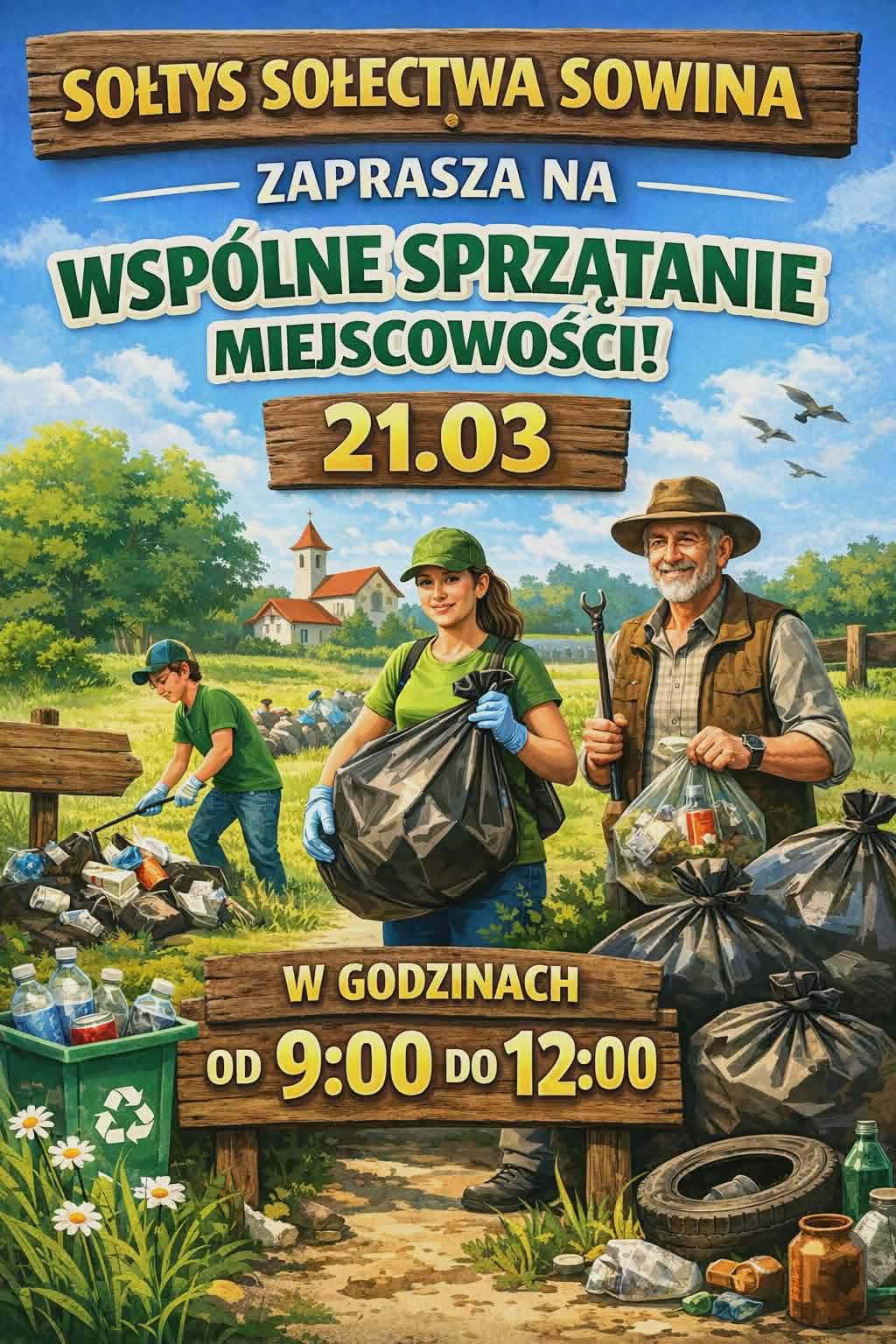 Zapraszamy wszystkich mieszkańców do udziału w wielkiej akcji sprzątania Gminy, która odbędzie się 𝟐𝟏 𝐦𝐚𝐫𝐜𝐚 𝟐𝟎𝟐𝟔 𝐫. (sobota).