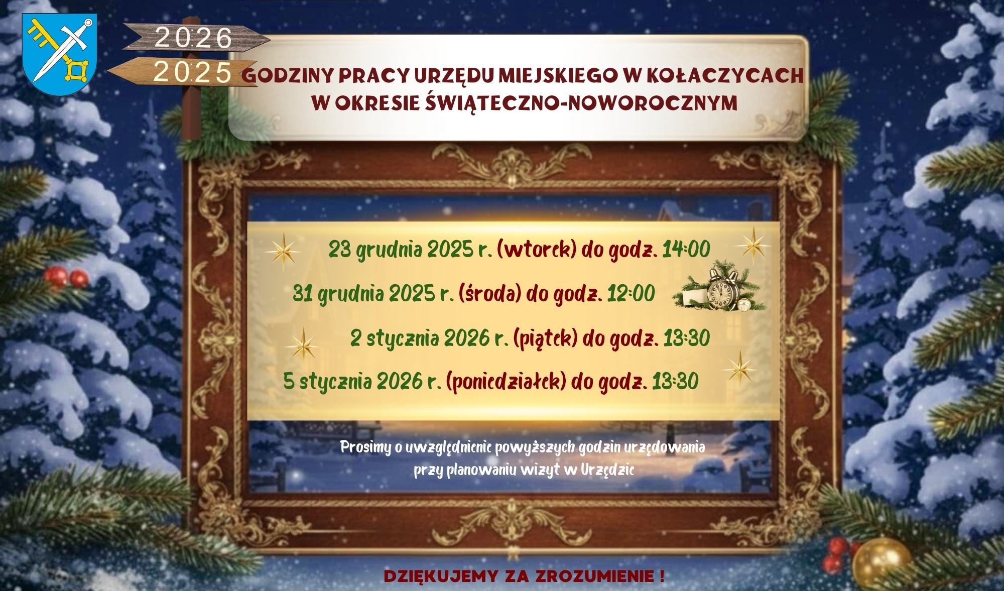 Zmiany godzin pracy Urzędu Miejskiego w Kołaczycach w okresie świąteczno-noworocznym