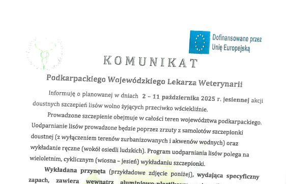 Trwa jesienna akcja szczepienia lisów przeciwko wściekliźnie na terenie całego województwa podkarpackiego. Zrzucane z samolotów szczepionki mają post prostopadłościennej lub walcowatej przynęty.