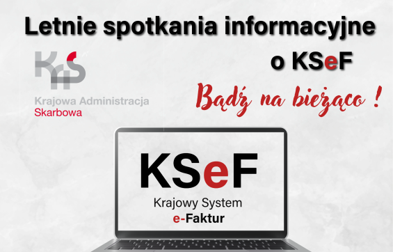 Naczelnik Podkarpackiego Urzędu Skarbowego w Rzeszowie zaprasza na serię spotkań informacyjnych w ramach cyklu "Letnie spotkania informacyjne o KSeF - Bądź na bieżąco!", które odbędą się w lipcu i sierpniu br.: