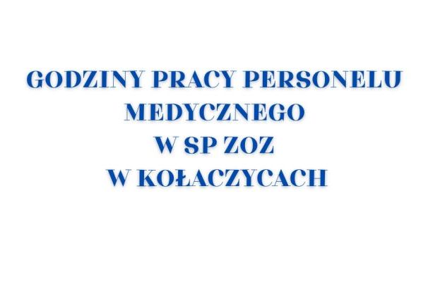 GODZINY PRACY PERSONELU MEDYCZNEGO W SP ZOZ W KOŁACZYCACH