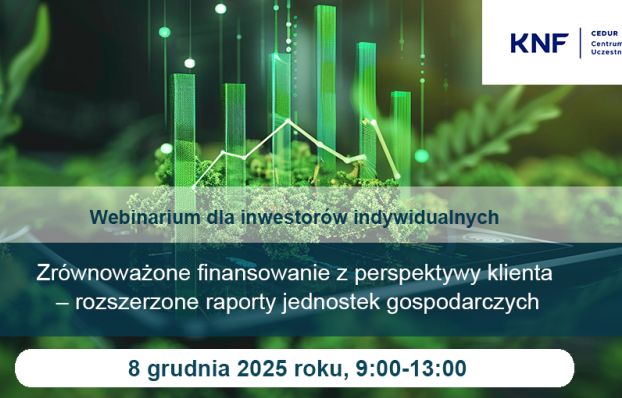 Urząd Komisji Nadzoru Finansowego zaprasza inwestorów indywidualnych na webinarium „Zrównoważone finansowanie z perspektywy klienta – rozszerzone raporty jednostek gospodarczych” organizowane w ramach...