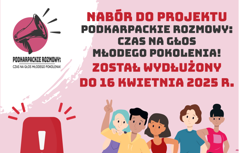 Fundacja Misji Obywatelskiej przekazuje informację o przedłużeniu rekrutacji dotyczącej projektu pn. ,,Podkarpackie Rozmowy: Czas na Głos Młodego Pokolenia!’’.