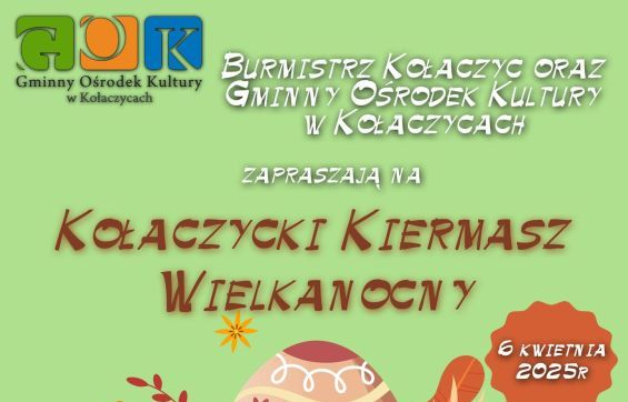 Burmistrz Kołaczyc Pani Magdalena Stasiowska wraz z Gminnym Ośrodkiem Kultury w Kołaczycach mają przyjemność zaprosić wszystkich mieszkańców i gości na KIERMASZ WILKANOCNY, który...