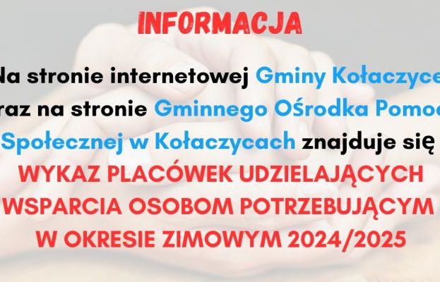 UM WYKAZ PLACÓWEK UDZIELAJĄCYCH WSPARCIA OSOBOM POTRZEBUJĄCYM W OKRESIE ZIMOWYM 2024/2025