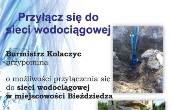 Przypominamy o możliwości przyłączenia się do sieci wodociągowej w miejscowości Bieździedza.
