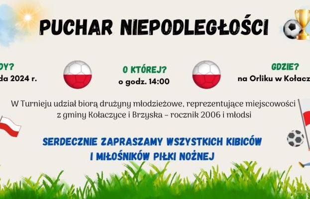 Animatorzy Sportu na Orlikach w Bieździedzy i w Kołaczycach zapraszają na TURNIEJ PIŁKI NOŻNEJ O PUCHAR BURMISTRZA KOŁACZYC dla młodzieży, z okazji obchodów Święta Odzyskania Niepodległości.