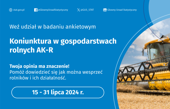 Rozpoczęła się kolejna edycja Badania Koniunktury w Gospodarstwach Rolnych (AK-R). Jest ona realizowana w dniach od 15 do 31 lipca br.