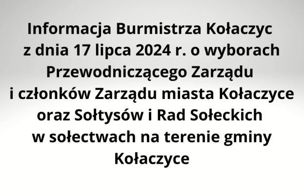 Zakład Gospodarki Komunalnej w Kołaczycach Sp. z o.o. informuje, że w związku z planowanymi pracami na sieci wodociągowej w dniu 26.07.2024r. (piątek) od godz. 8:00 do godz. 11:00 wystąpi przerwa w dostawie wody w Nawsiu Kołaczyckim. Wyłączeniem objęte...