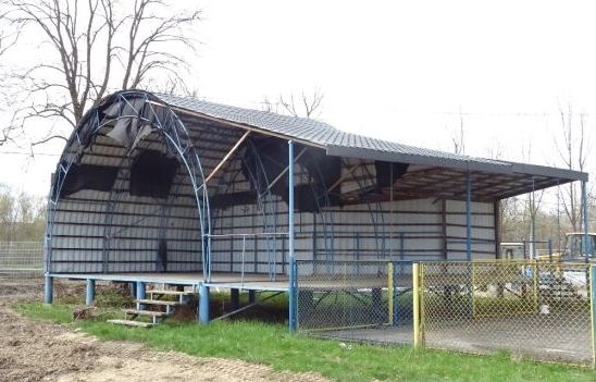 Burmistrz Kołaczyc informuje o przeznaczeniu do rozbiórki sceny plenerowej konstrukcji stalowej z podłogą drewnianą usytuowanej na działce nr ewid. 208/1 w Kołaczycach (stadion „Ostoja”).