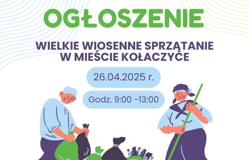 Informujemy, że WIELKIE WIOSENNE SPRZĄTANIE w mieście Kołaczyce zostało przeniesione na 26 kwietnia 2025 r. od godziny 9:00 do 13:00.