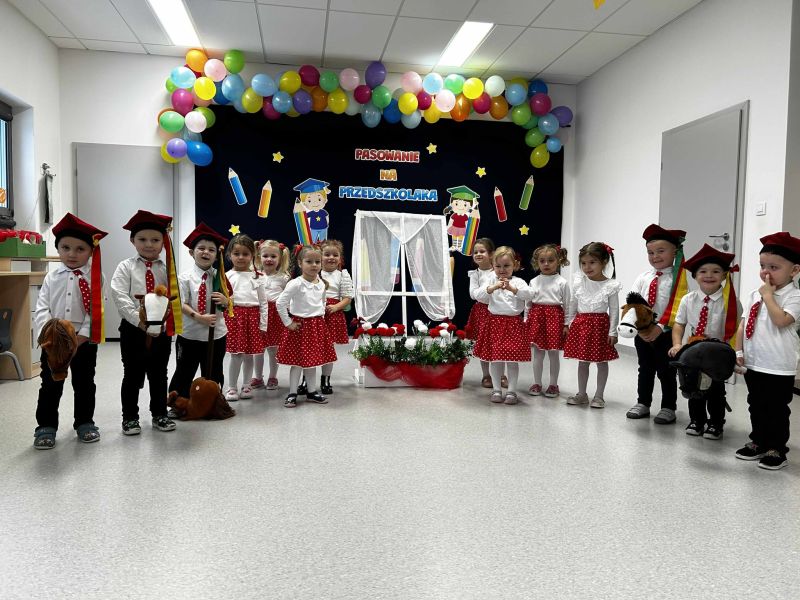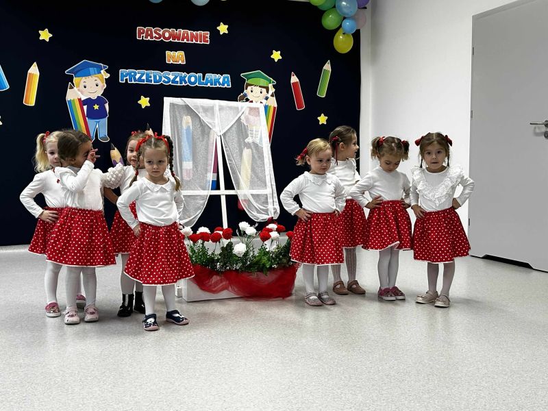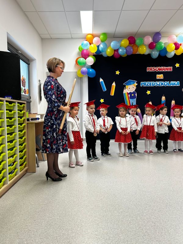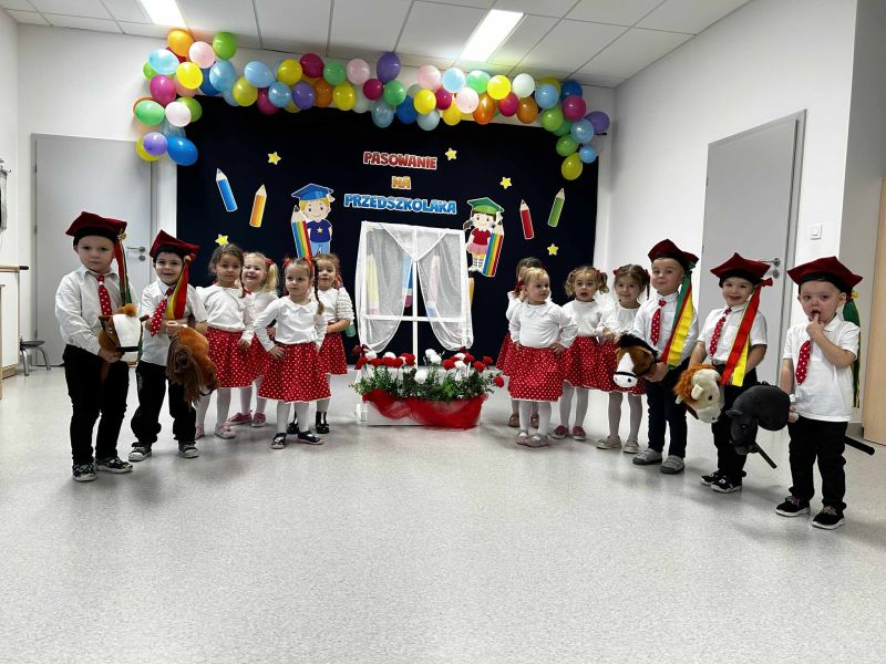 Pasowanie na przedszkolaka to pierwsza ważniejsza uroczystość dzieci, dlatego w tym wyjątkowym dniu dzieciom towarzyszyli ich rodzice. Uroczystość rozpoczęła się od krótkiej części artystycznej, w której dzieci zaprezentowały swoje umiejętności recytatorskie, wokalne i taneczne. Małe przedszkolaki zachwyciły swoim występem zgromadzoną publiczność. Po części artystycznej nastąpił akt pasowania, którego dokonała Pani Dyrektor Anna Czech.