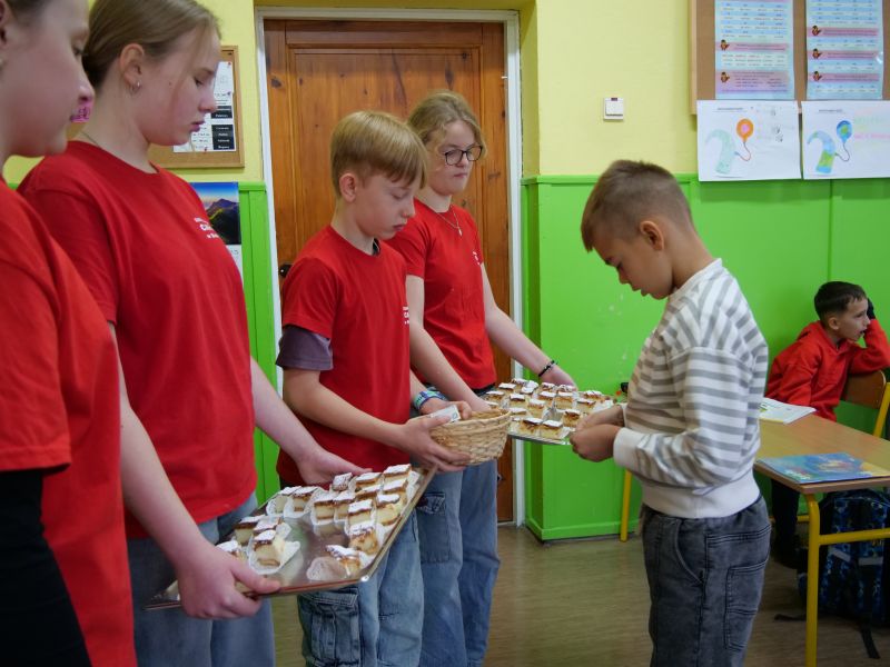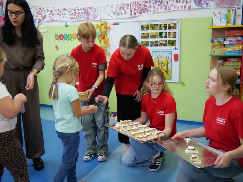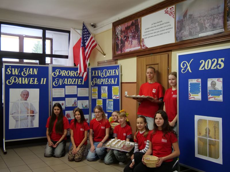 W tym dniu Szkolne Koło Caritas rozprowadzało także "papieskie kremówki" w formie cegiełek na działalność wolontariacką. Serdeczne podziękowania należą się Panu Marcinowi Janikowi oraz pracownikom kuchni za bezinteresowną pomoc w przygotowaniu przepysznych kremówek, które zadowoliły podniebienia wszystkich naszych szkolnych łasuchów.