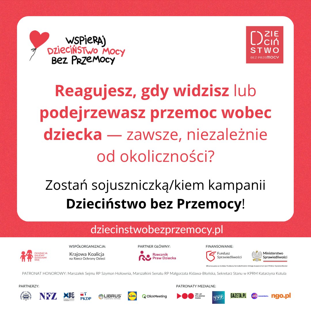 Zmiana zaczyna się od nas! Dlatego jeśli wiemy lub podejrzewamy, że dziecko jest krzywdzone, reagujmy. To pierwszy krok do tego, by dziecko miało szansę odzyskać poczucie bezpieczeństwa.