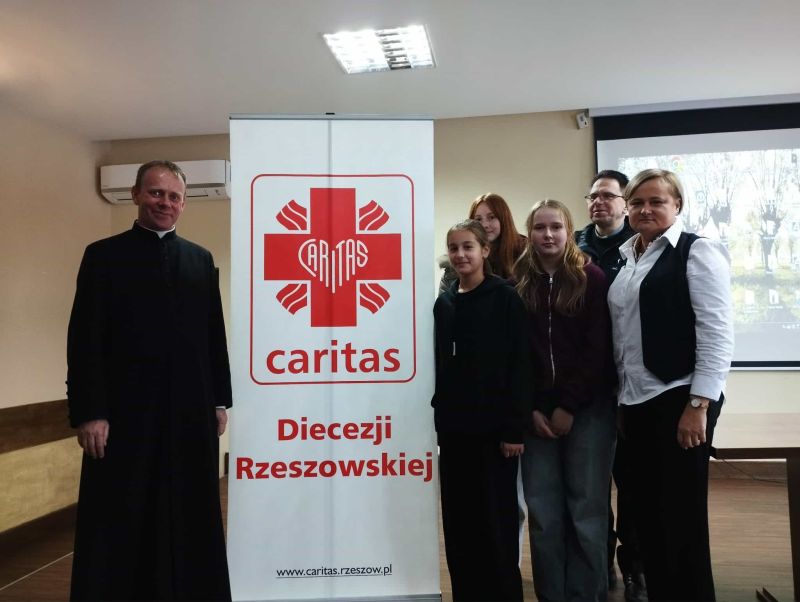 27 listopada 2025 roku odbyło się coroczne Spotkanie Wolontariuszy, Opiekunów i kościelnych Asystentów Szkolnych Kół Caritas Diecezji Rzeszowskiej w Jaśle. W spotkaniu wzięli udział nasi uczniowie wraz z opiekunami Szkolnego Koła Caritas: Panią Wicedyrektor Beatą Biernacką oraz ks. Mariuszem Korbeckim. Warto przypomnieć, że działalność charytatywna rozpowszechniana przez wolontariuszy Szkolnych Kół Caritas trwa w Polsce 30 lat, a w naszej szkole już blisko 20 lat. To lata wypełnione wielkim sercem i zaangażowaniem na rzecz potrzebujących. Udział w Spotkaniu Szkolnych Kół Caritas jest formą podziękowania za wytrwałą pracę wolontariacką oraz motywacją i zachętą do podejmowania kolejnych wyzwań.