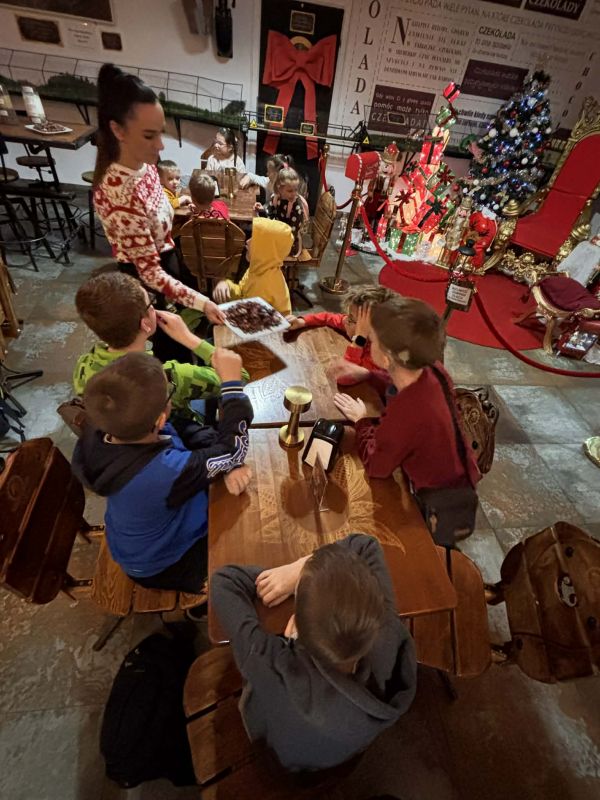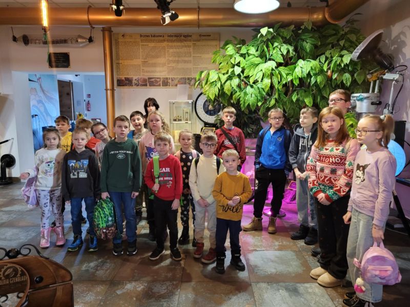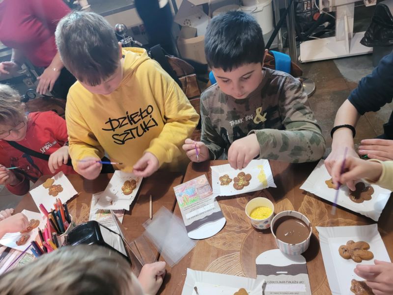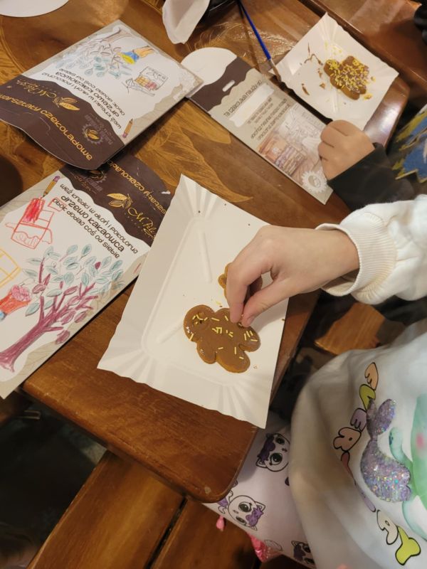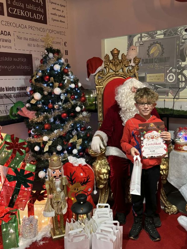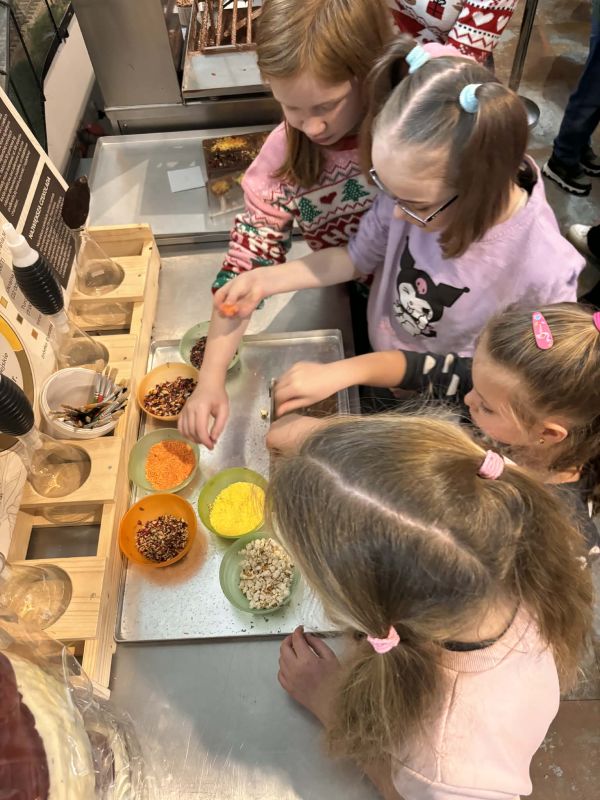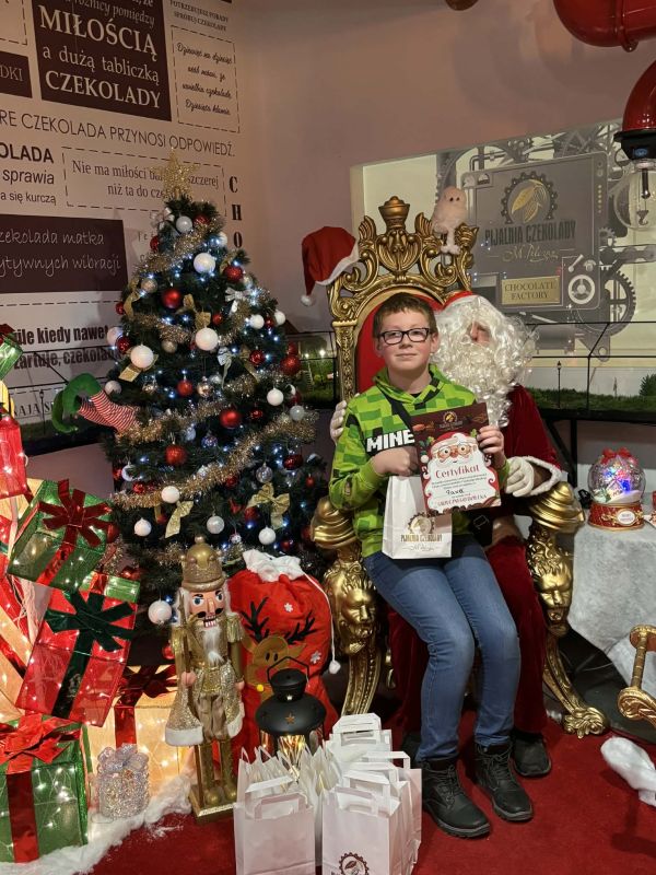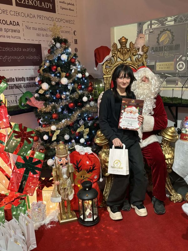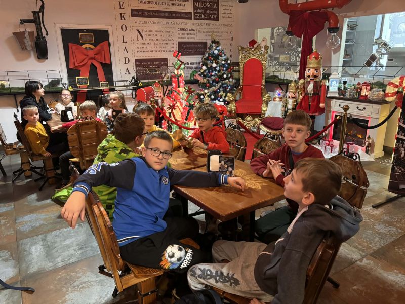 5 grudnia 2025 roku odbył się mikołajkowy wyjazd do Pijalni Czekolady w Korczynie, w którym uczestniczyło 19 uczniów realizujących w naszej szkole kształcenie specjalne. Uczniowie obejrzeli film edukacyjny o historii czekolady, poznali tajniki wyrobu tego magicznego przysmaku oraz degustowali jego różne gatunki. W ramach zajęć warsztatowych uczestnicy wycieczki mieli okazję stworzyć tabliczkę czekolady według własnego pomysłu oraz dekorowali świąteczne pierniczki. Warsztaty cukiernicze dla wszystkich okazały się wyjątkowo pasjonującym i kreatywnym zajęciem. Ostatnim punktem programu było spotkanie ze Świętym Mikołajem w iście bajkowej scenerii. Święty Mikołaj był bardzo hojny i nikt nie wyszedł ze spotkania z nim bez prezentu. Nasi uczniowie uznali natomiast, że integracyjny wyjazd do Pijalni Czekolady w Korczynie był najsłodszym dniem tego roku szkolnego :)